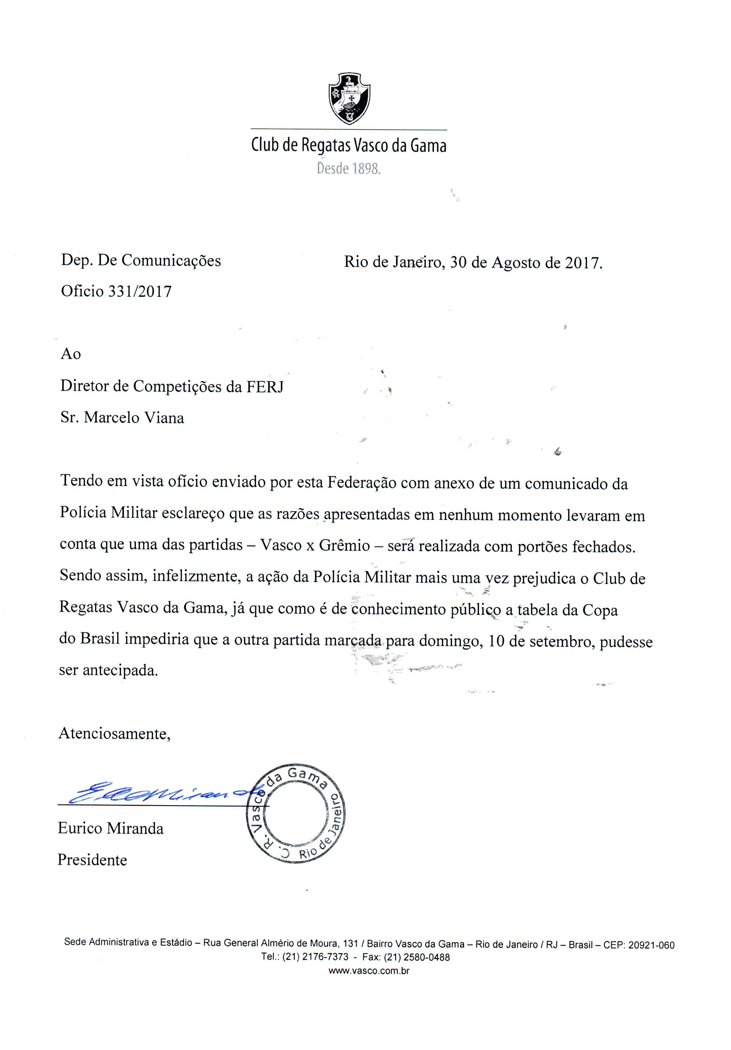 Presidente do Vasco diz a FERJ que PM prejudica clube mais uma vez