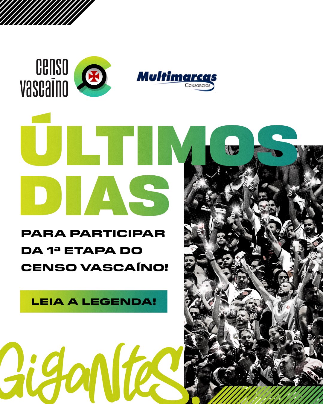 Chegamos à reta final da 1a etapa do Censo Vascaíno! Sua participação é muito importante para o #VascoDaGama! 💢