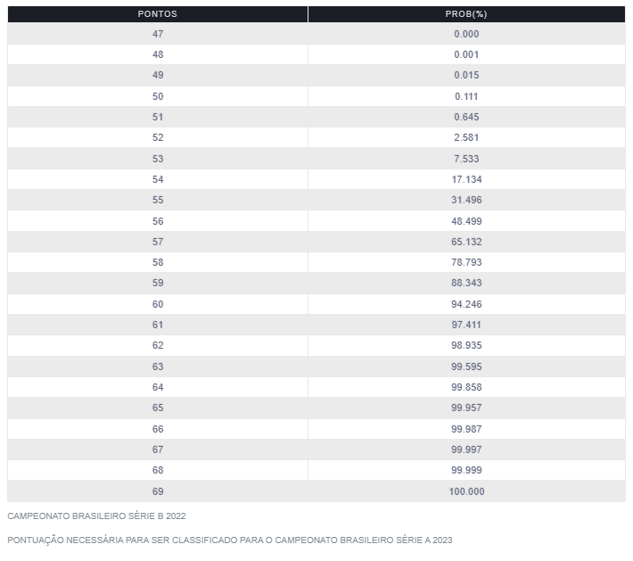 Antes da rodada, a probabilidade de acesso com 62 pontos era de 99,244%. Caiu para 98,935%.