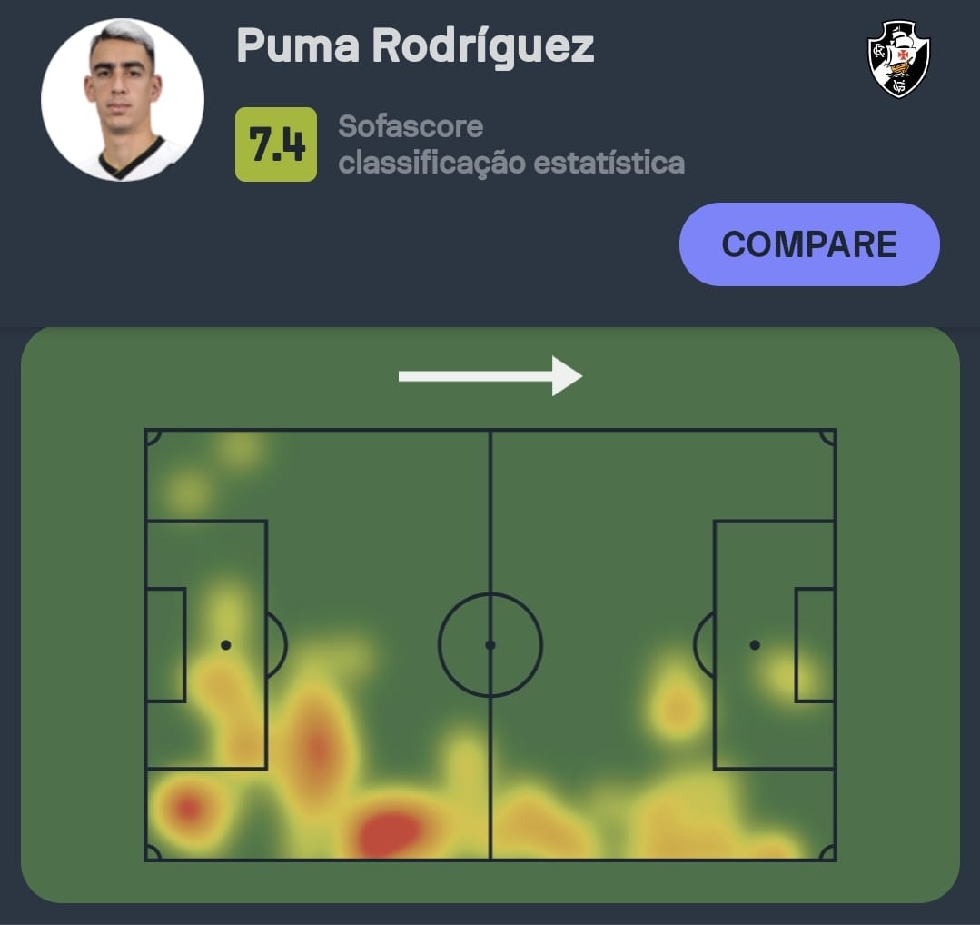 Puma Rodríguez foi o líder em ações defensivas (13) de Vasco 1-0 Cuiabá.