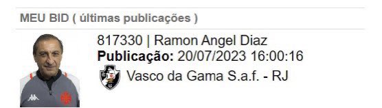 🚨AGORA: Ramon Diaz aparece no BID da CBF.