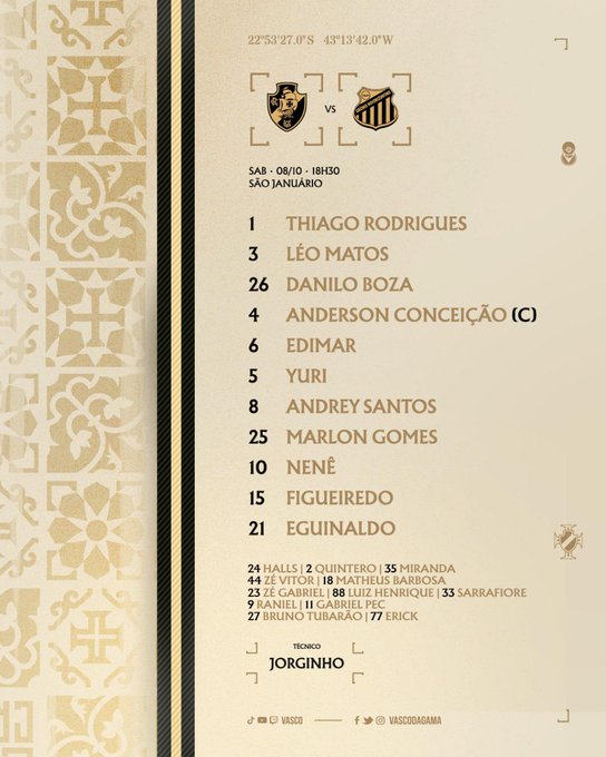 Vasco escalado com Marlon Gomes entre os titulares no lugar de Raniel. #lanceCOLINA