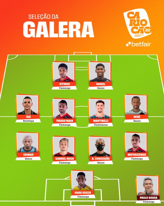 A #SeleçãoDaGalera ficou dividida entre @Botafogo, @Flamengo, @FluminenseFC e @VascodaGama! Vocês votaram e os melhores da 3ª rodada do #CariocãoBetfair22 estão aqui!