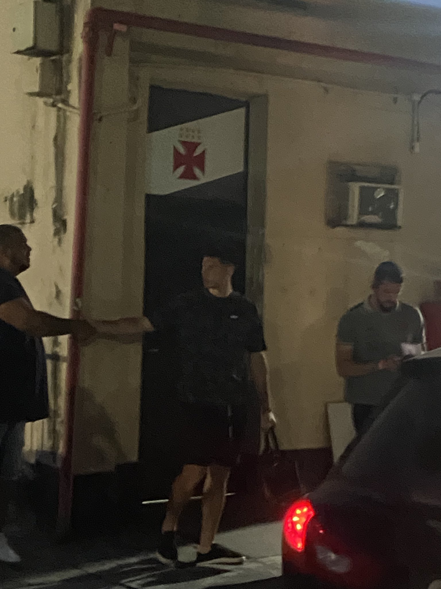 Acompanhado de um segurança do Vasco, o zagueiro Manuel Capasso chegou para assistir sua primeira partida em São Januário #lanceCOLINA