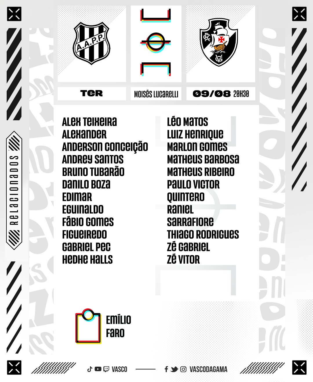 Relacionados para o duelo contra a Ponte Preta, em Campinas. #VascoDaGama