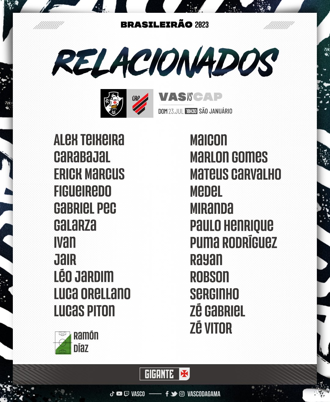 Relacionados do Vasco para enfrentar o Athletico-PR