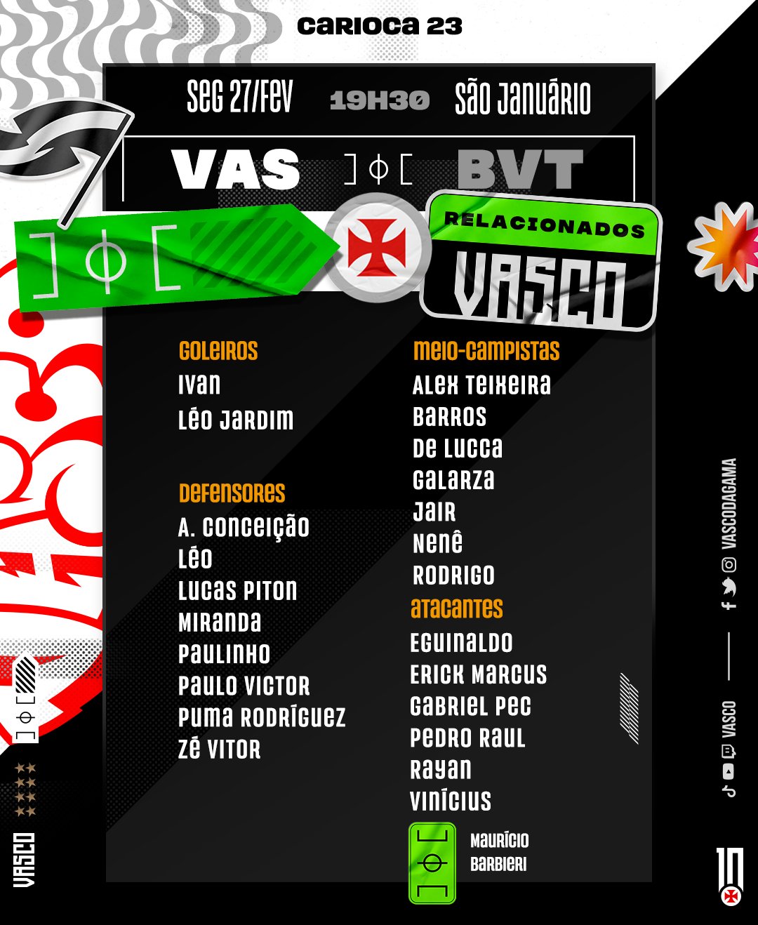 📋 Lista de atletas relacionados para o duelo desta noite em São Januário!