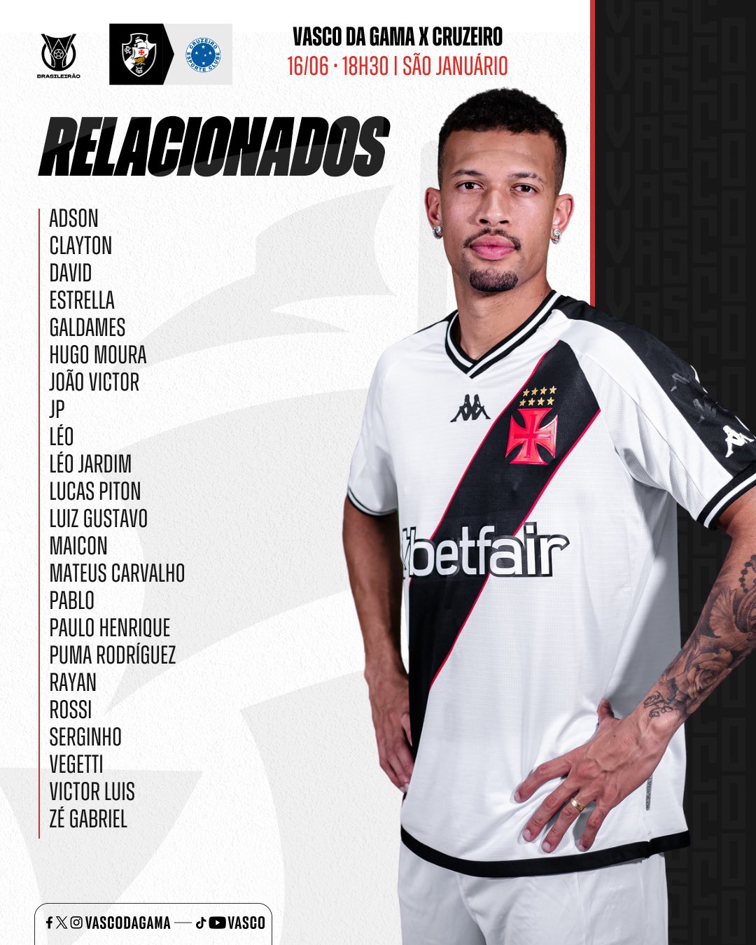 Relacionados do Vasco para enfrentar o Cruzeiro