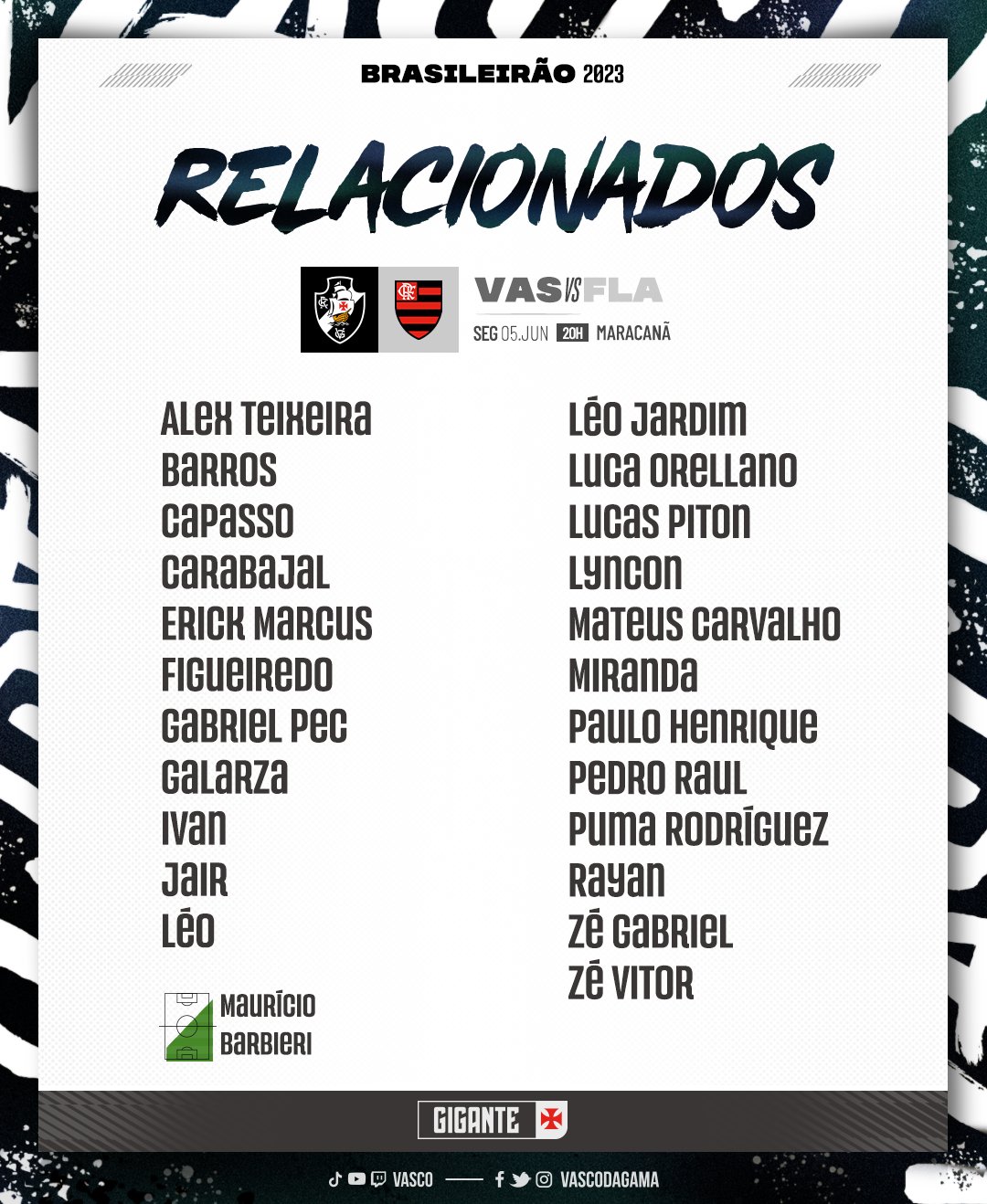 Relacionados do Vasco para enfrentar o Flamengo