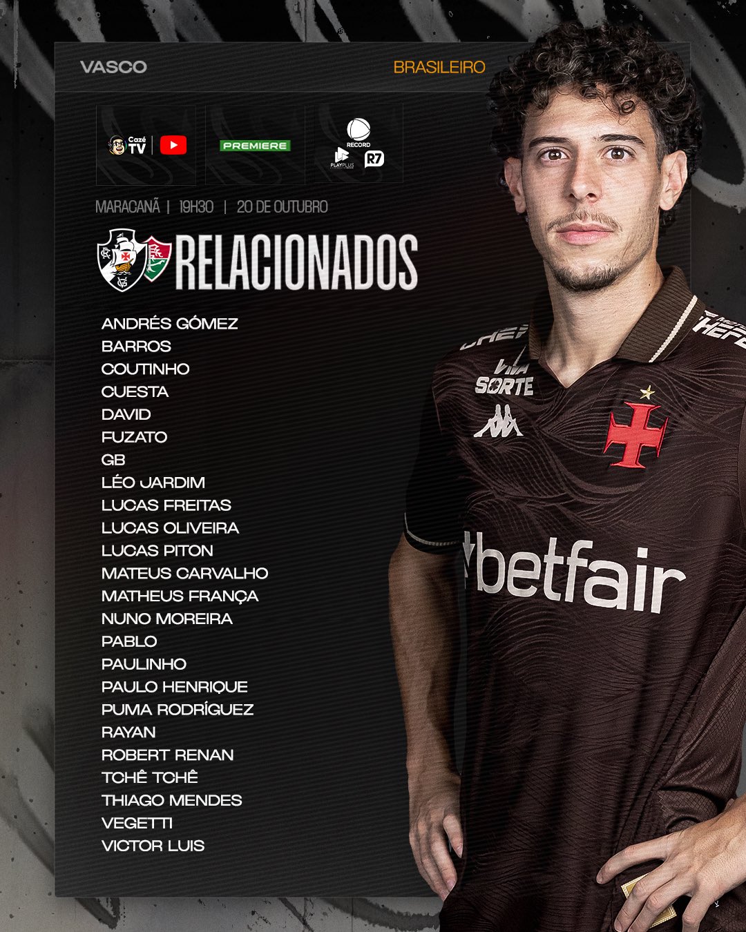📋📋 Os Relacionados do Vasco para o clássico desta noite 💢