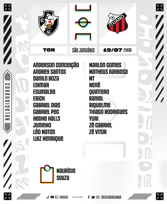 Confira os relacionados para o duelo #VASxITU pela 19ª rodada do Campeonato Brasileiro.