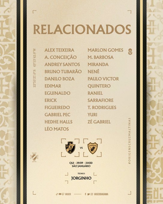 📝 Relacionados para a partida desta noite em São Januário 💢