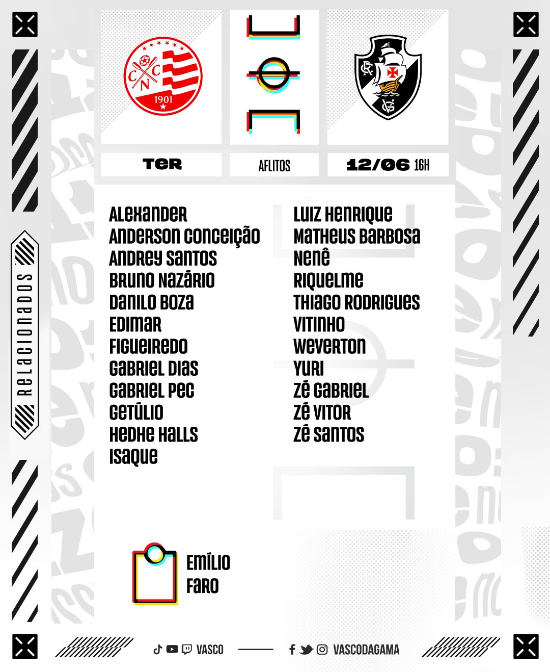 Relacionados do Vasco para jogo contra o Náutico