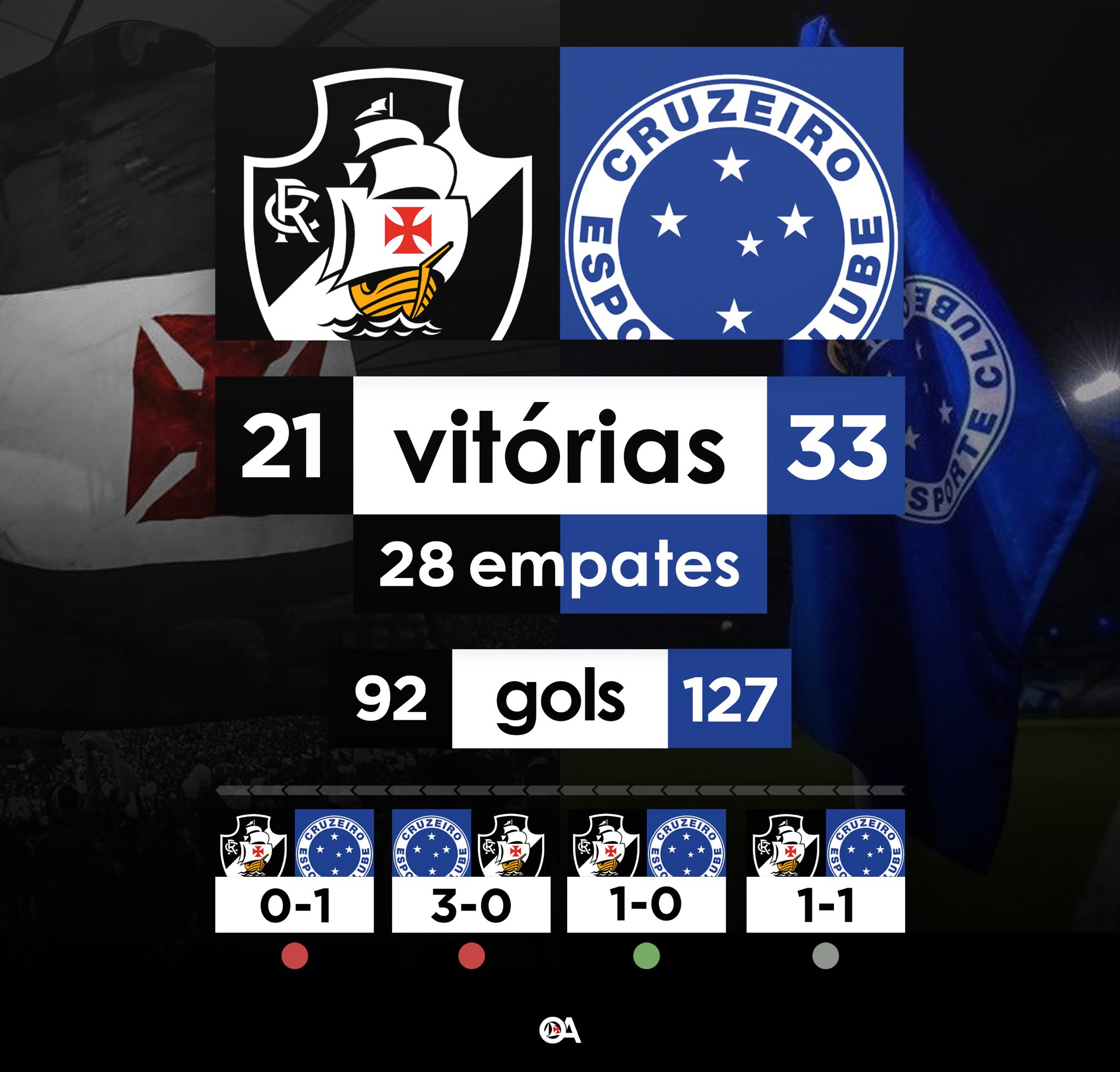 Estatísticas dos confrontos oficiais entre Vasco e Cruzeiro, desde 1967.