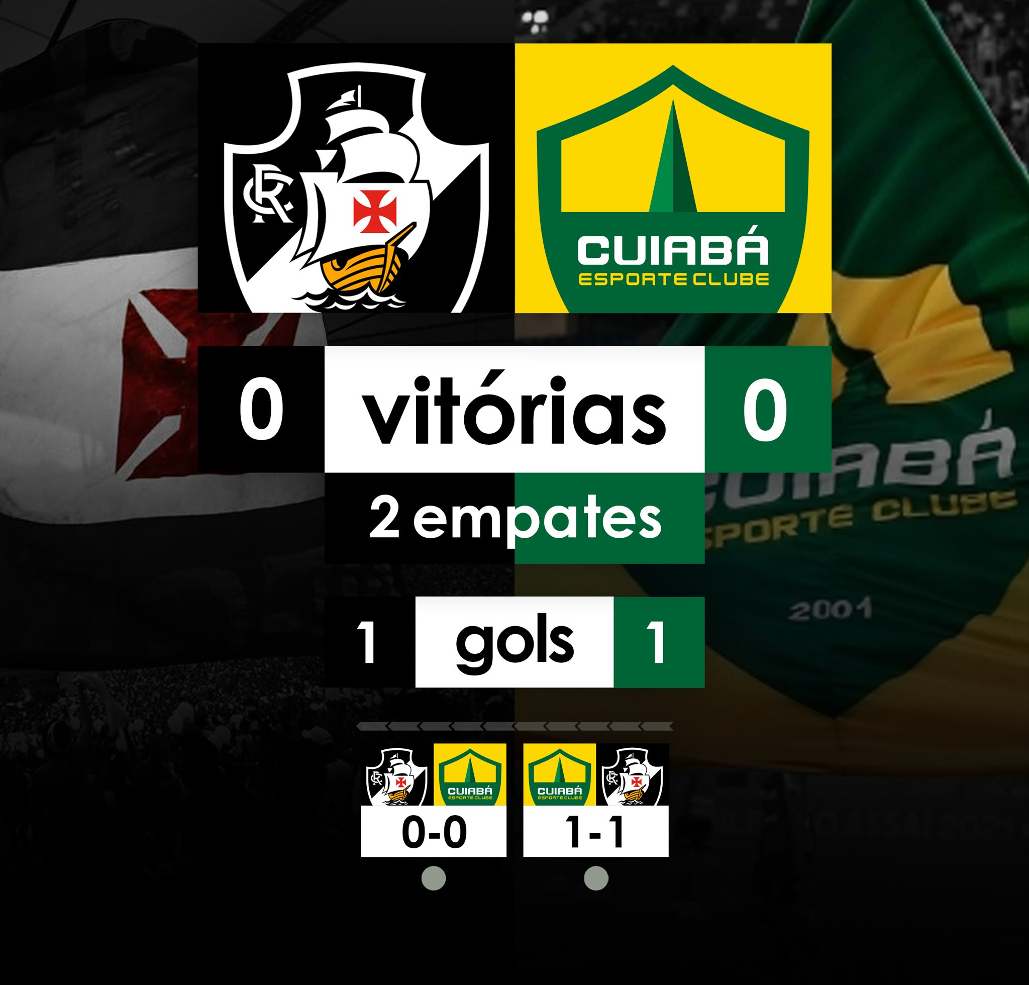 Segue o retrospecto pesadíssimo entre Vasco e Cuiabá, com muita tradição.