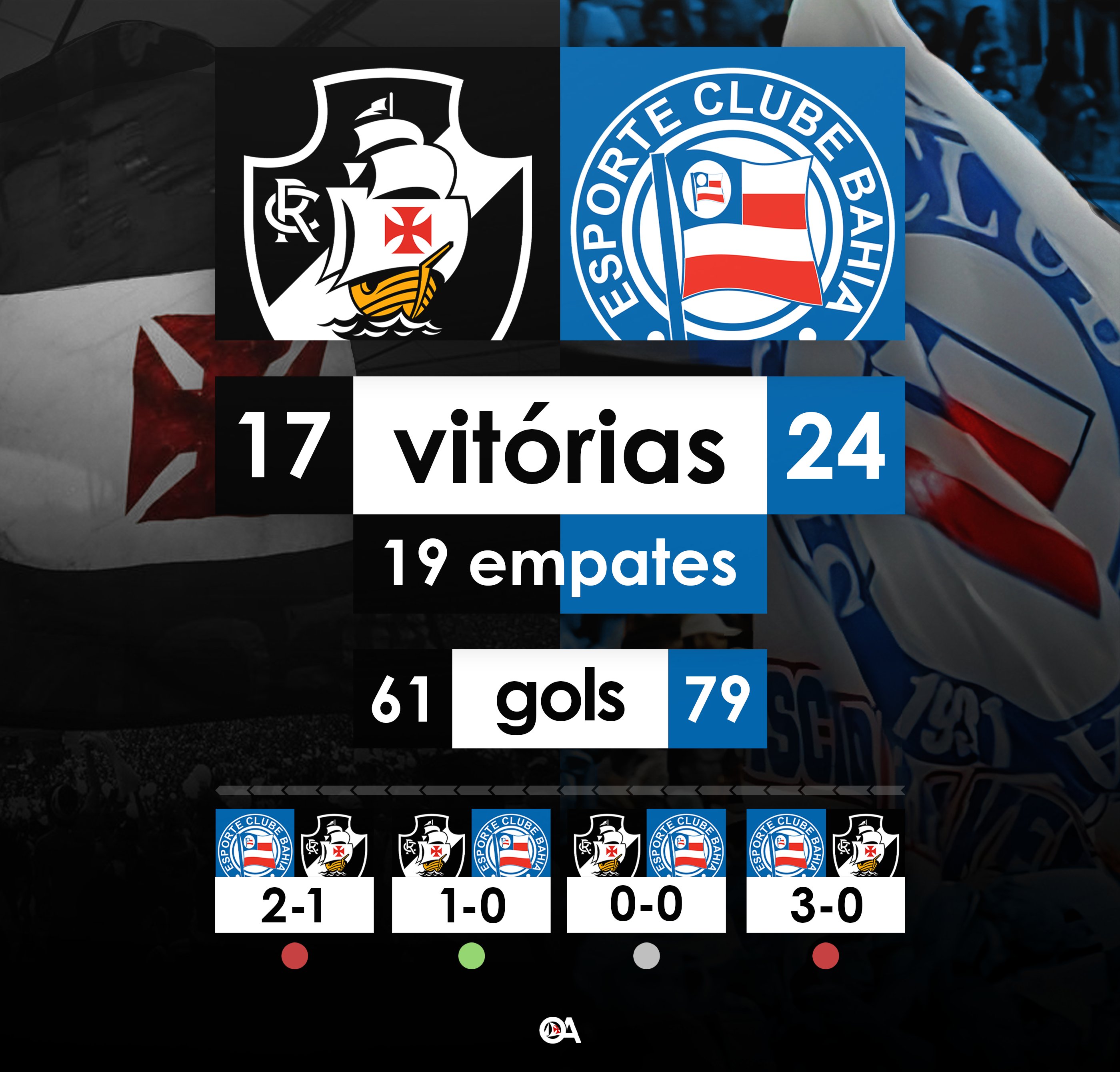 Retrospecto do Vasco contra o Bahia