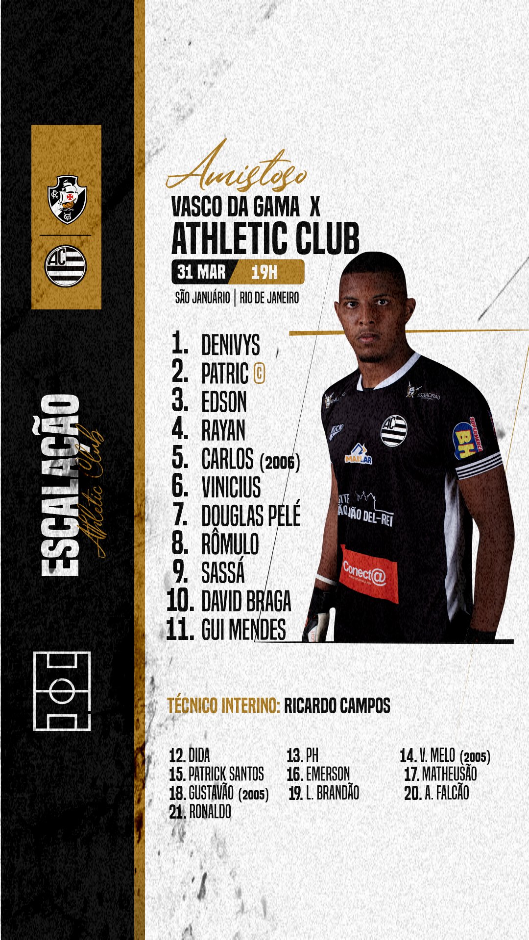 Rival: Athletic Club escalado para enfrentar o Vasco