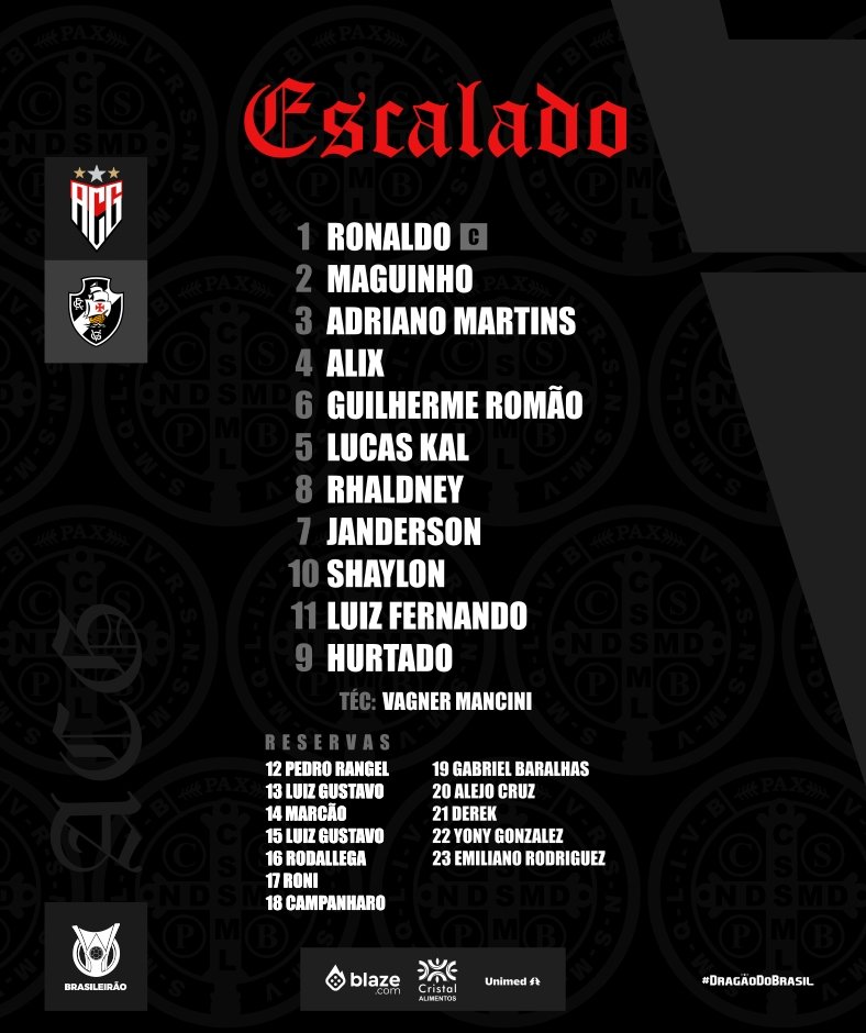 Rival: Atlético-GO escalado para enfrentar o Vasco