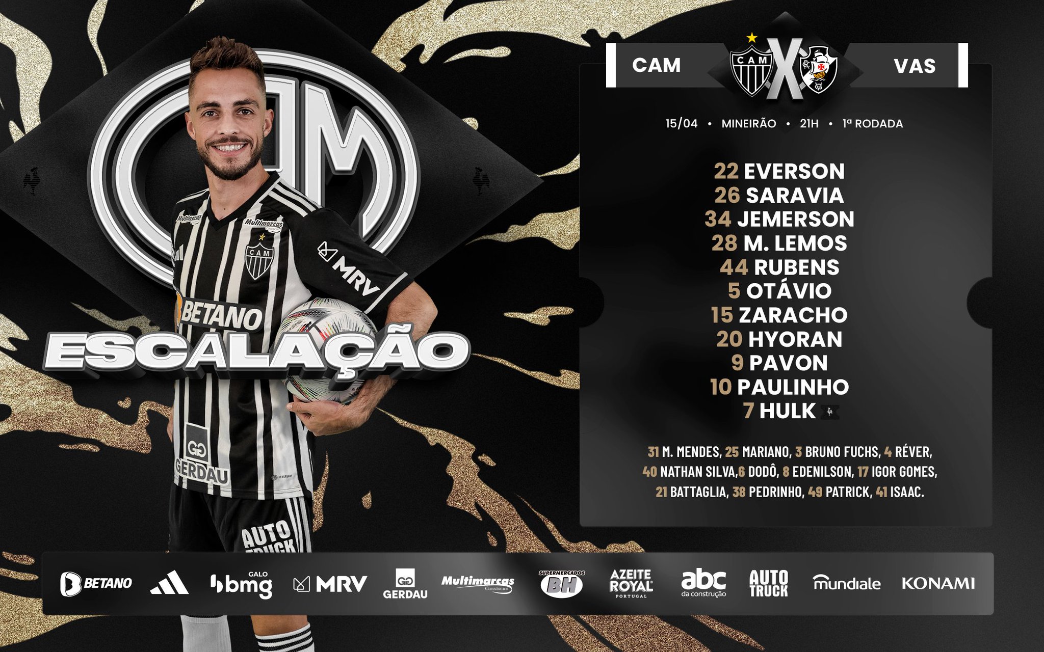 📋 GALO ESCALADO! Confira nossa escalação para enfrentar o Vasco pelo @Brasileirao.