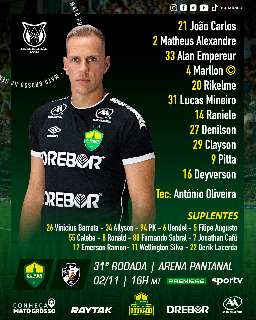 Rival: Cuiabá escalado para enfrentar o Vasco