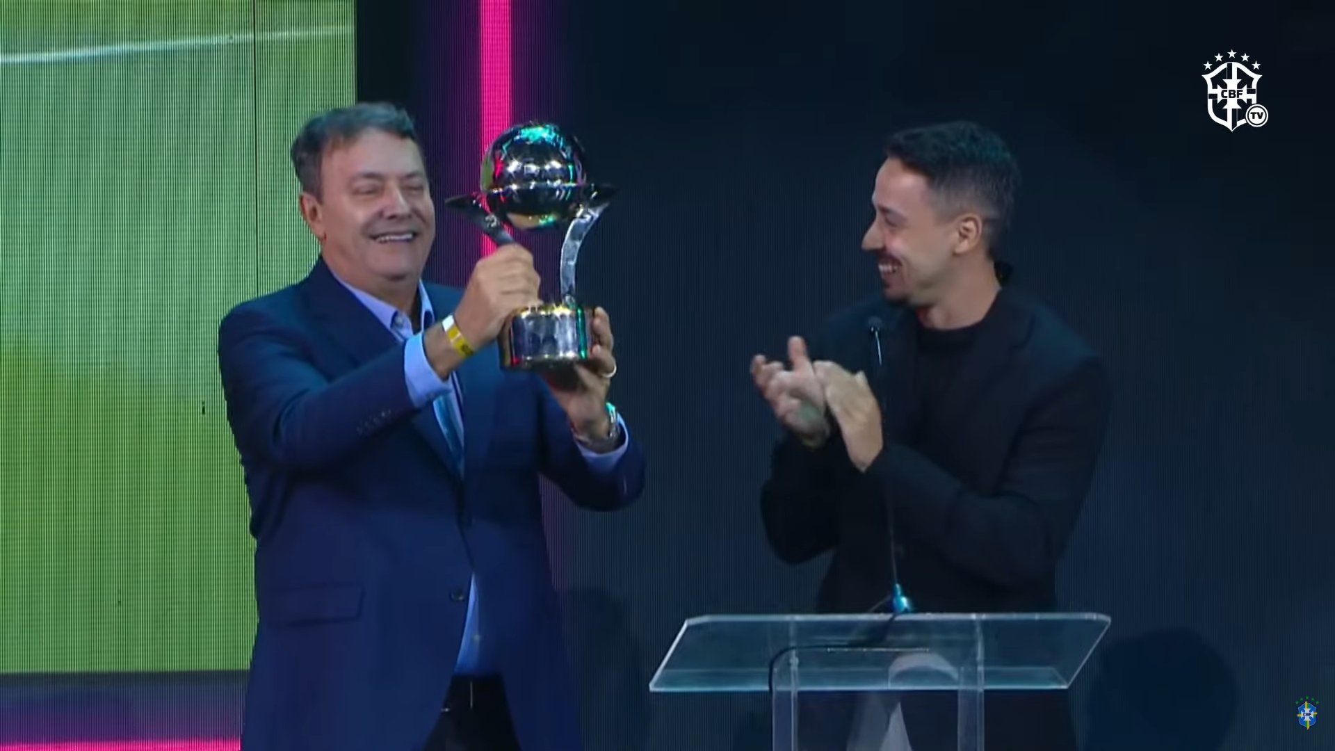 O dono do Cruzeiro recebeu o prêmio Roberto Dinamite de artilheiro do Brasileirão pelo Kaio Jorge.