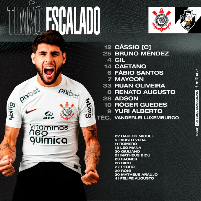 Rival: Escalação do Corinthians para enfrentar o Vasco