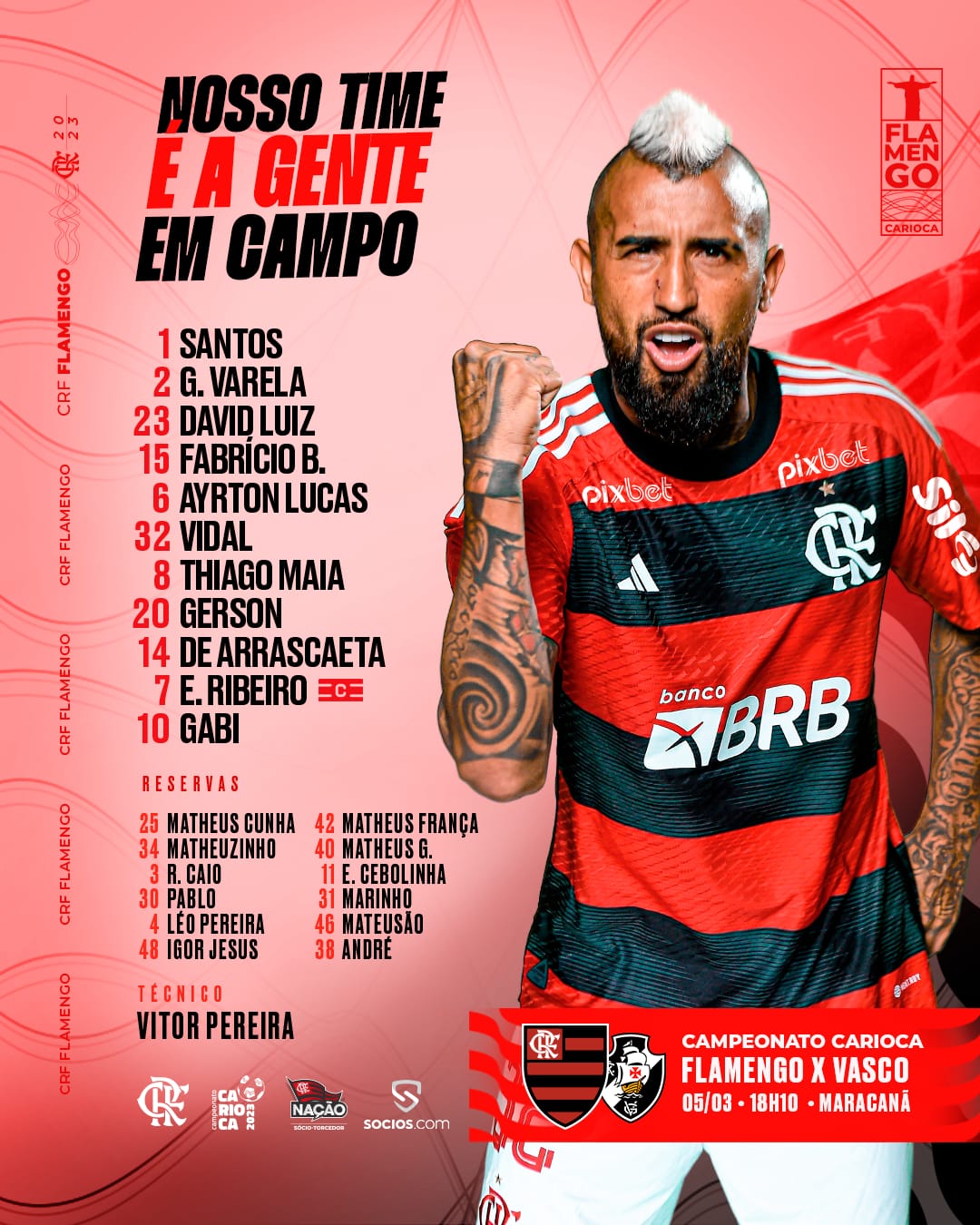 Rival: Escalação do Flamengo para o jogo contra o Vasco