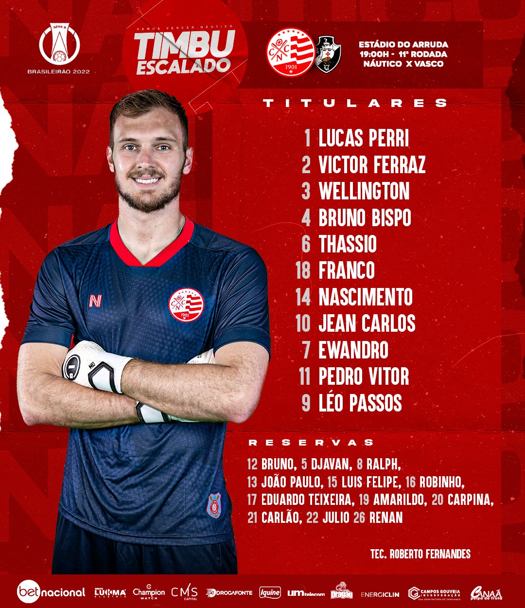 Rival: Escalação do Náutico para enfrentar o Vasco