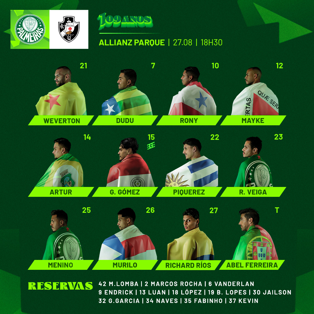 Rival: Palmeiras escalado para enfrentar o Vasco