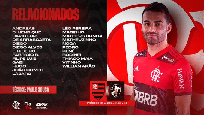 Rival: Relacionados do Flamengo para enfrentar o Vasco