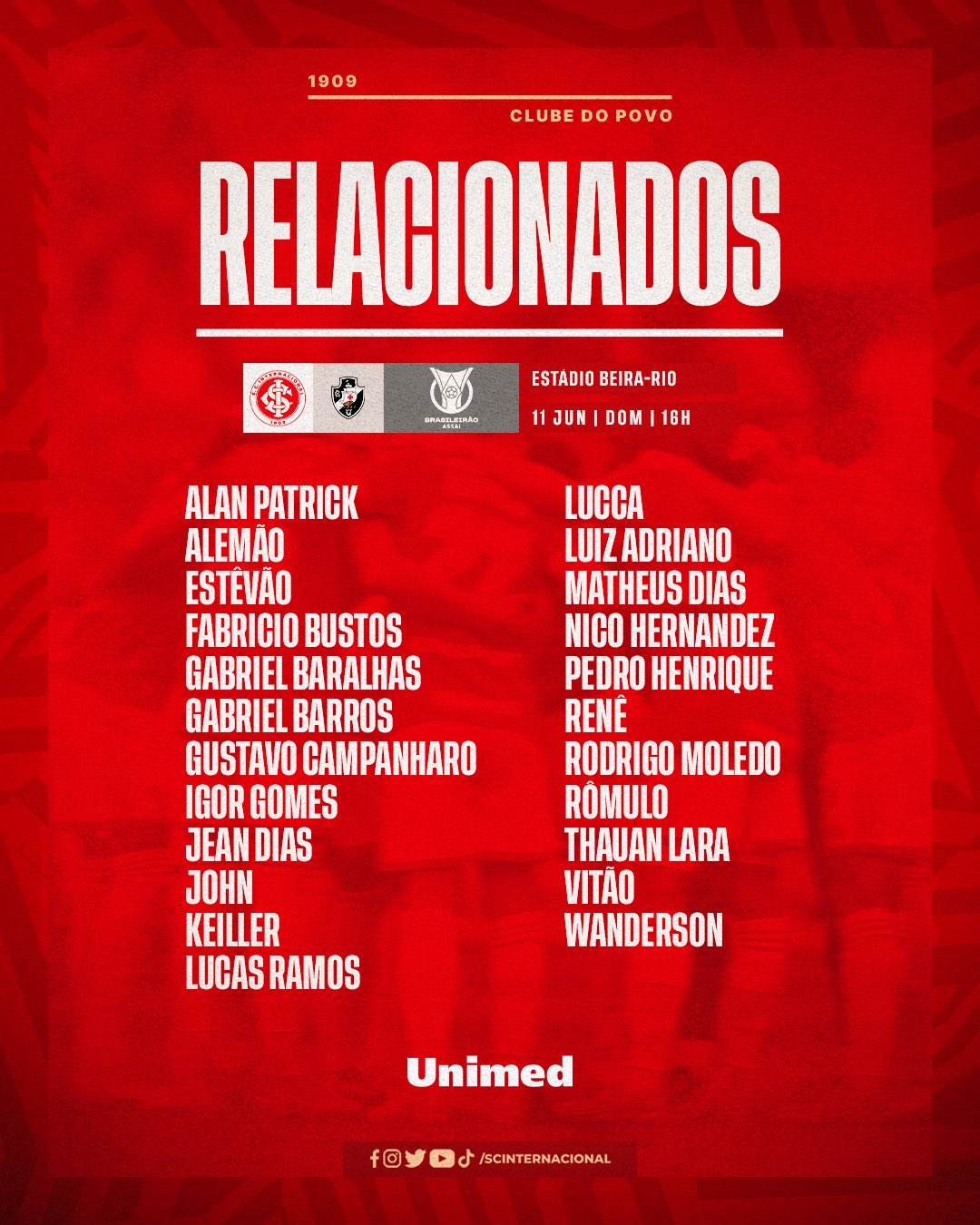 Rival: Relacionados do Internacional para o duelo contra o Vasco