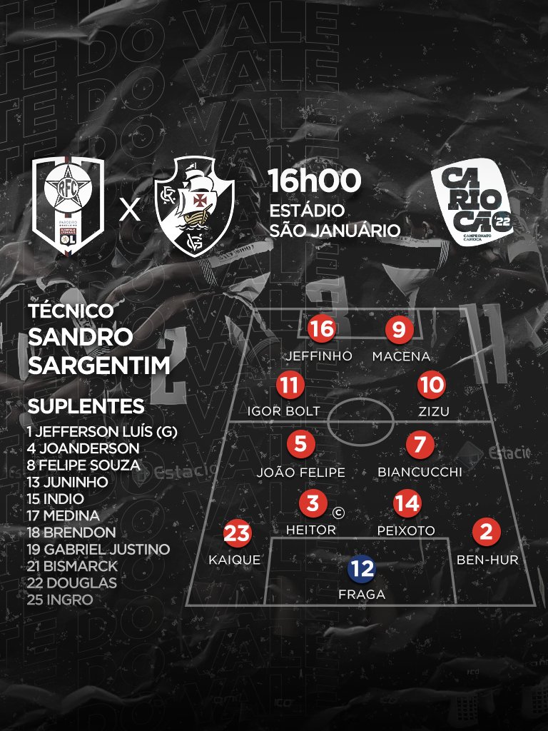 O treinador Sandro Sargentim promove algumas mudanças no Gigante do Vale para o jogo contra o Vasco. Bora, meu time! ⚫️⚪️