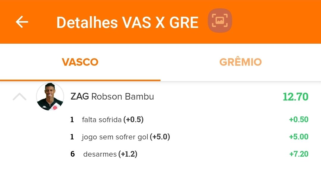 Robson foi o maior pontuador do Vasco na partida contra o Grêmio, pelo Cartola FC. O zagueiro contou com 6 desarmes, além de uma falta sofrida, segundo o aplicativo.