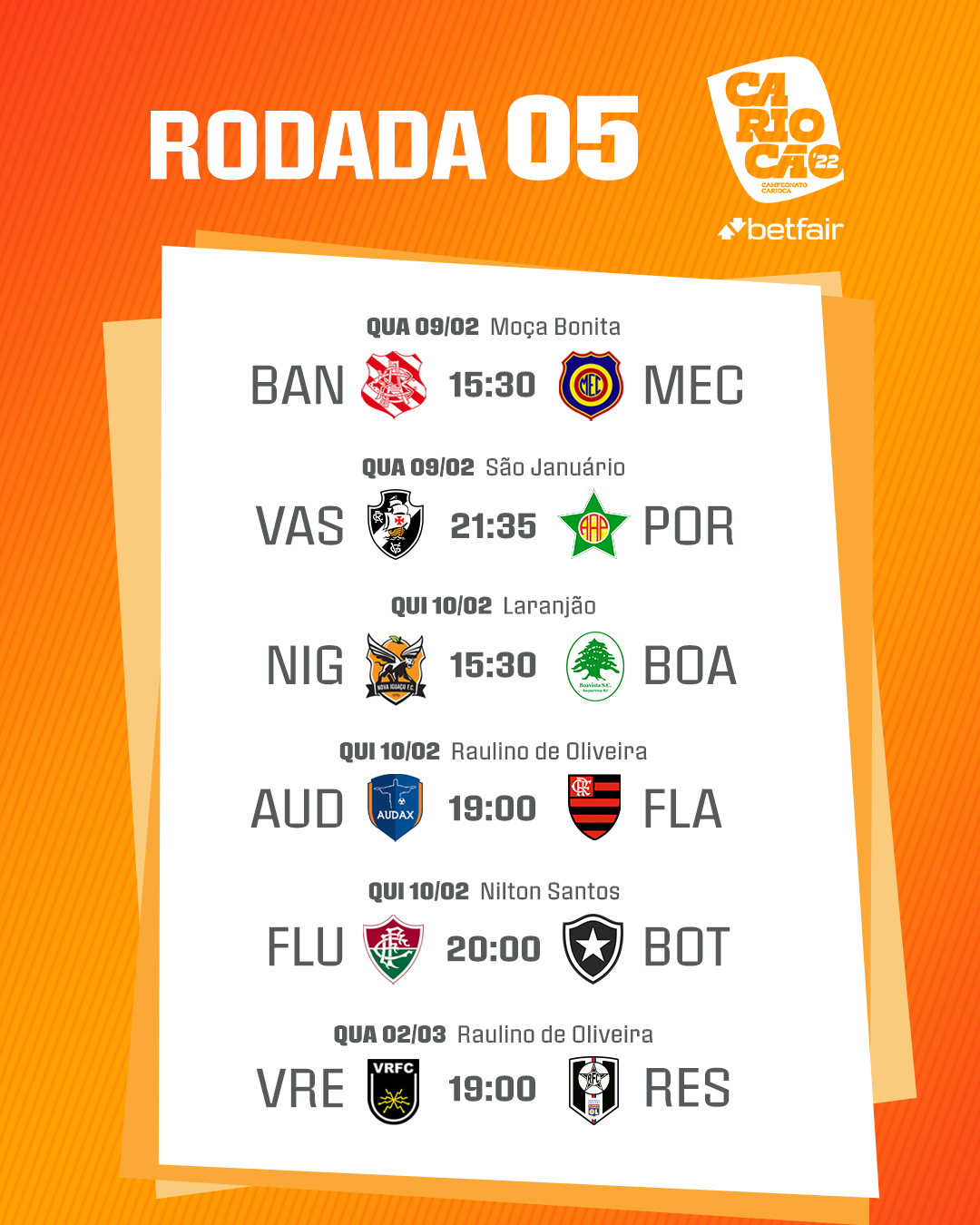Rodada 5 do Carioca se inicia nesta quarta (09)