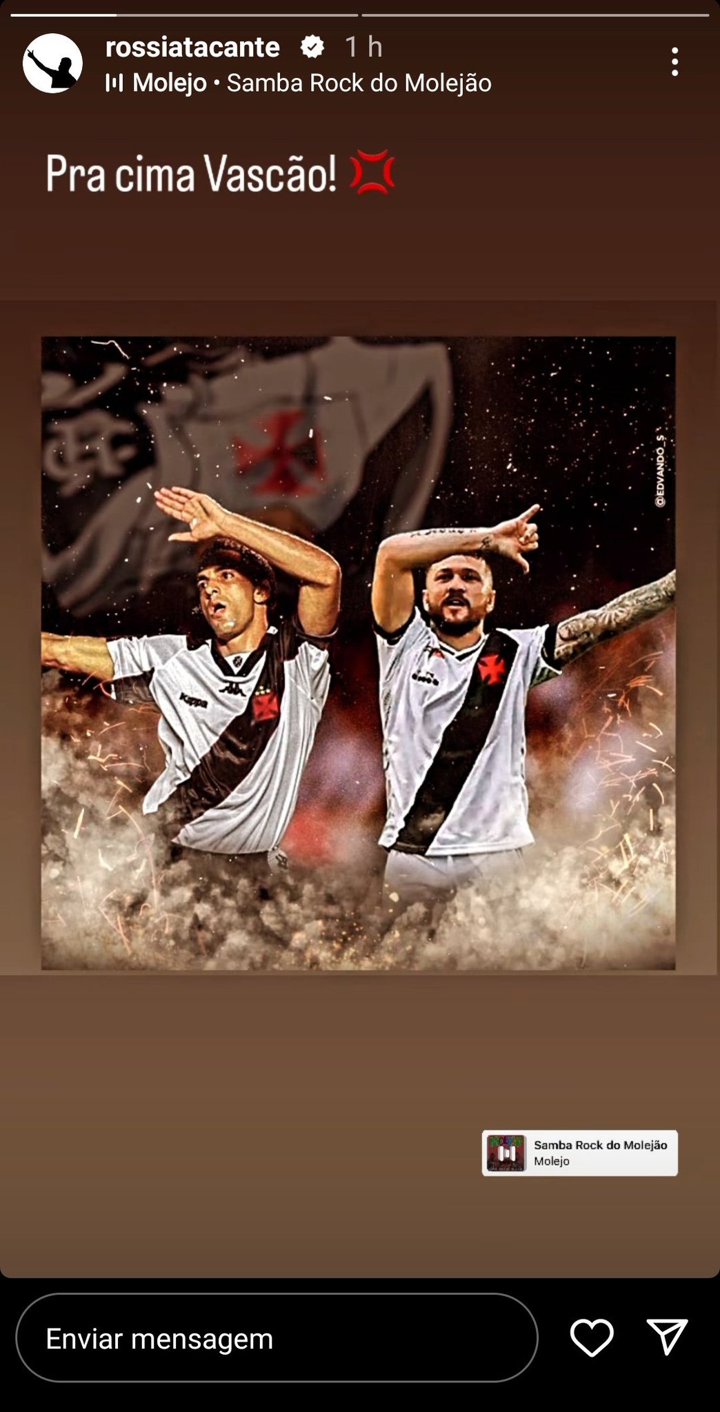 Rossi, via Instagram: 'Pra cima Vascão!'