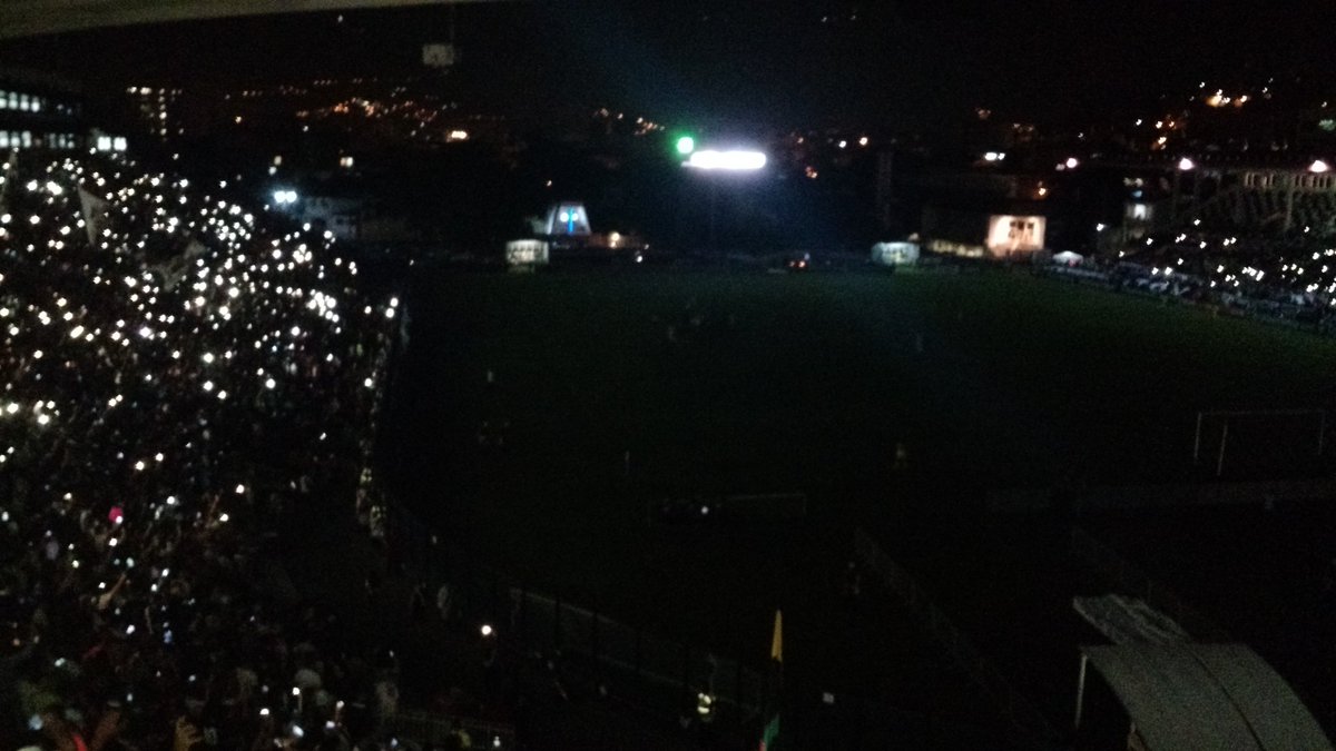 São Januário sem luz. Festa na arquibancada e gritos de "fora Eurico".