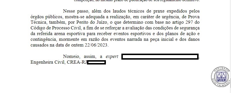 O Juizado Especial do Torcedor e dos Grandes Eventos determinou a realização de perícia em São Januário, a ser realizada em caráter de urgência por uma engenheira civil já nomeada. Com o laudo em mãos, o magistrado decidirá sobre a continuidade ou não da interdição.