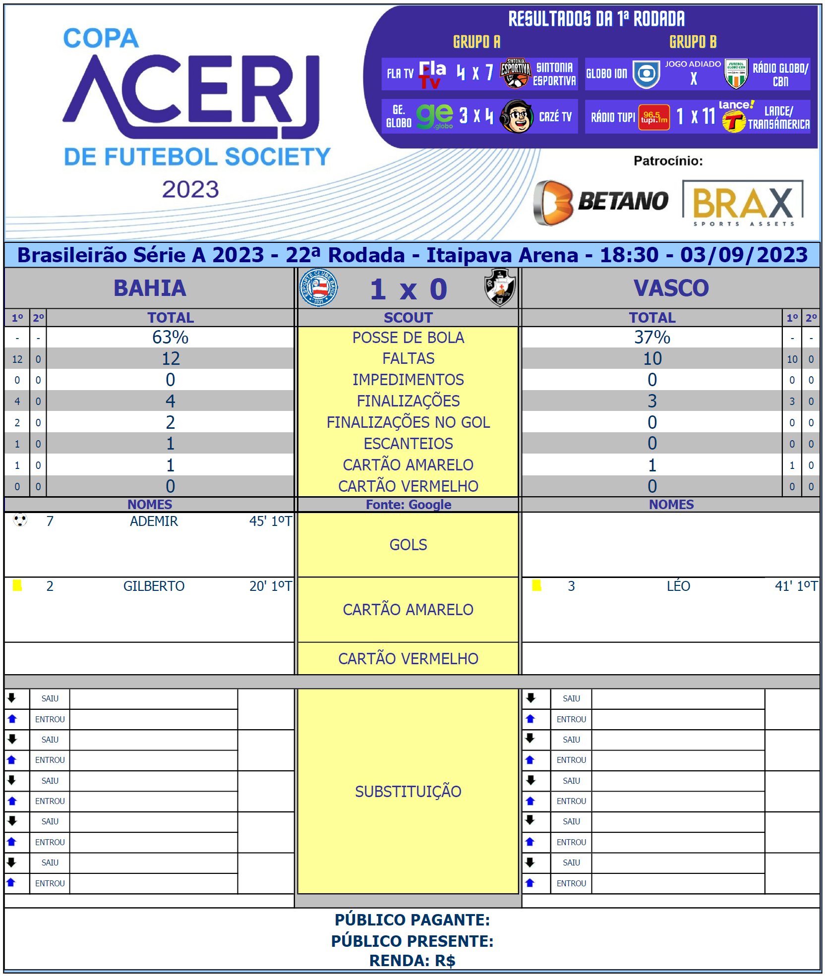 Scout do 1º Tempo de Bahia e Vasco pela 22ª Rodada do Campeonato Brasileiro 2023 na Arena Itaipava Fonte Nova (Fonte: Google) #Acerjinforma #Brasileirao #BAHxVAS #ECBahia #Vasco @Brasileirao @ecbahia @VascodaGama