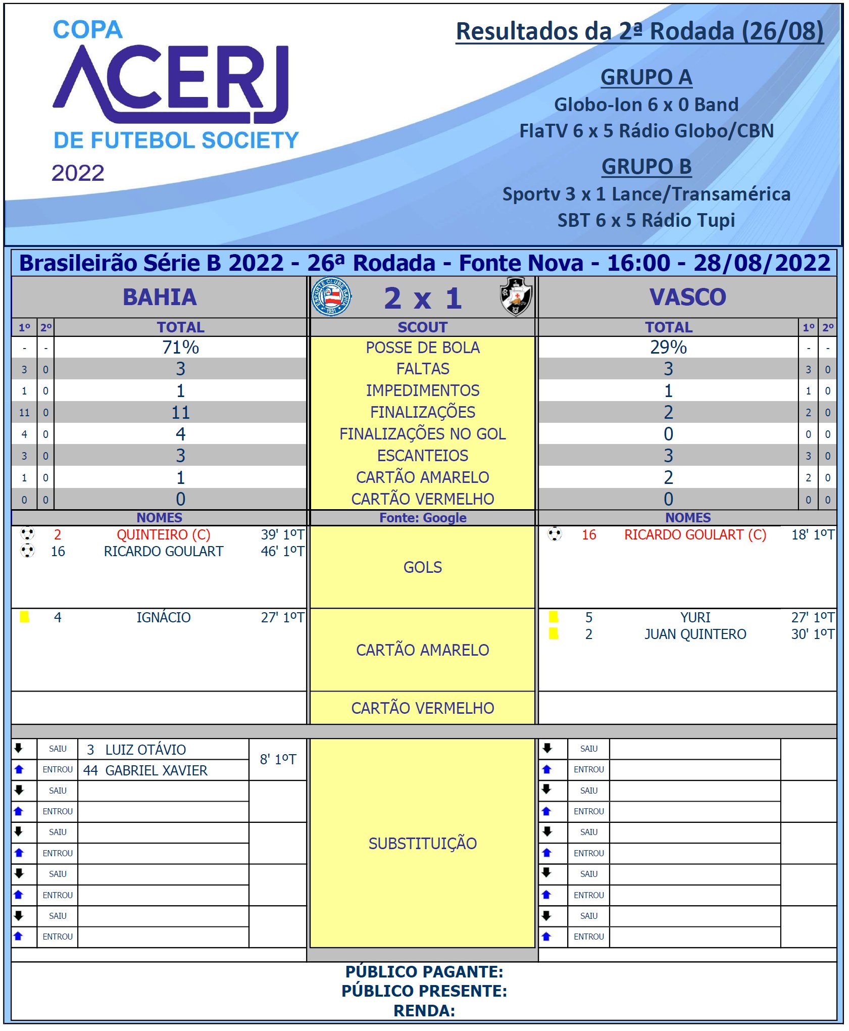 Scout do 1º Tempo de Bahia e Vasco pela 26ª Rodada do Campeonato Brasileiro da Serie B 2022 na Fonte Nova (Fonte: Google) #Acerjinforma #BrasileiraoSerieB #BAHxVAS #ECBahia #Vasco @BrasileiraoB @ECBahia @VascodaGama