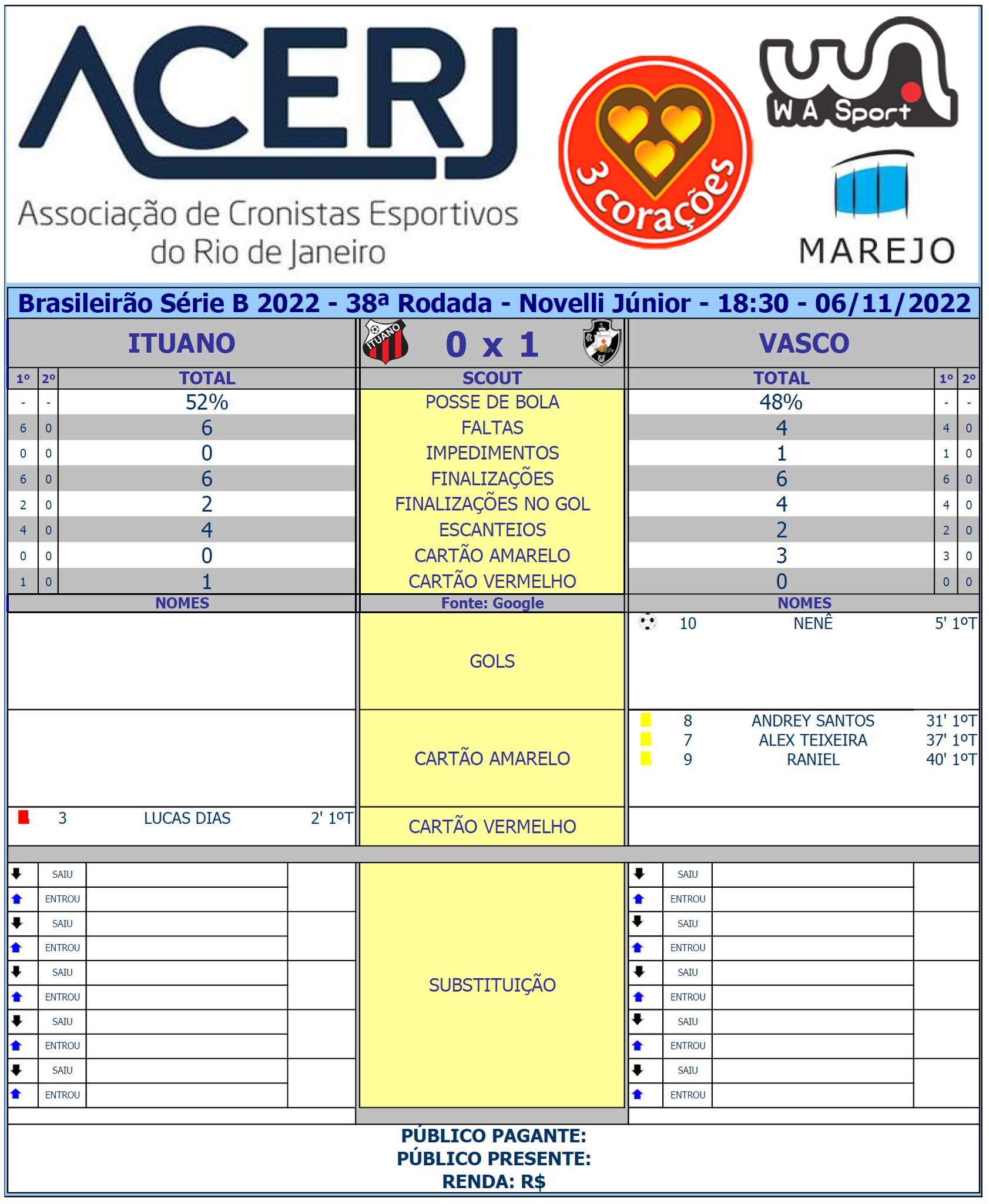 Scout do 1º Tempo de Ituano e Vasco pela 38ª Rodada do Campeonato Brasileiro da série B 2022 no Novelli Junior (Fonte: Google) #Acerjinforma #BrasileiraoSerieB #ITUxVAS #Ituano #Vasco @BrasileiraoB @ituanooficial @VascodaGama