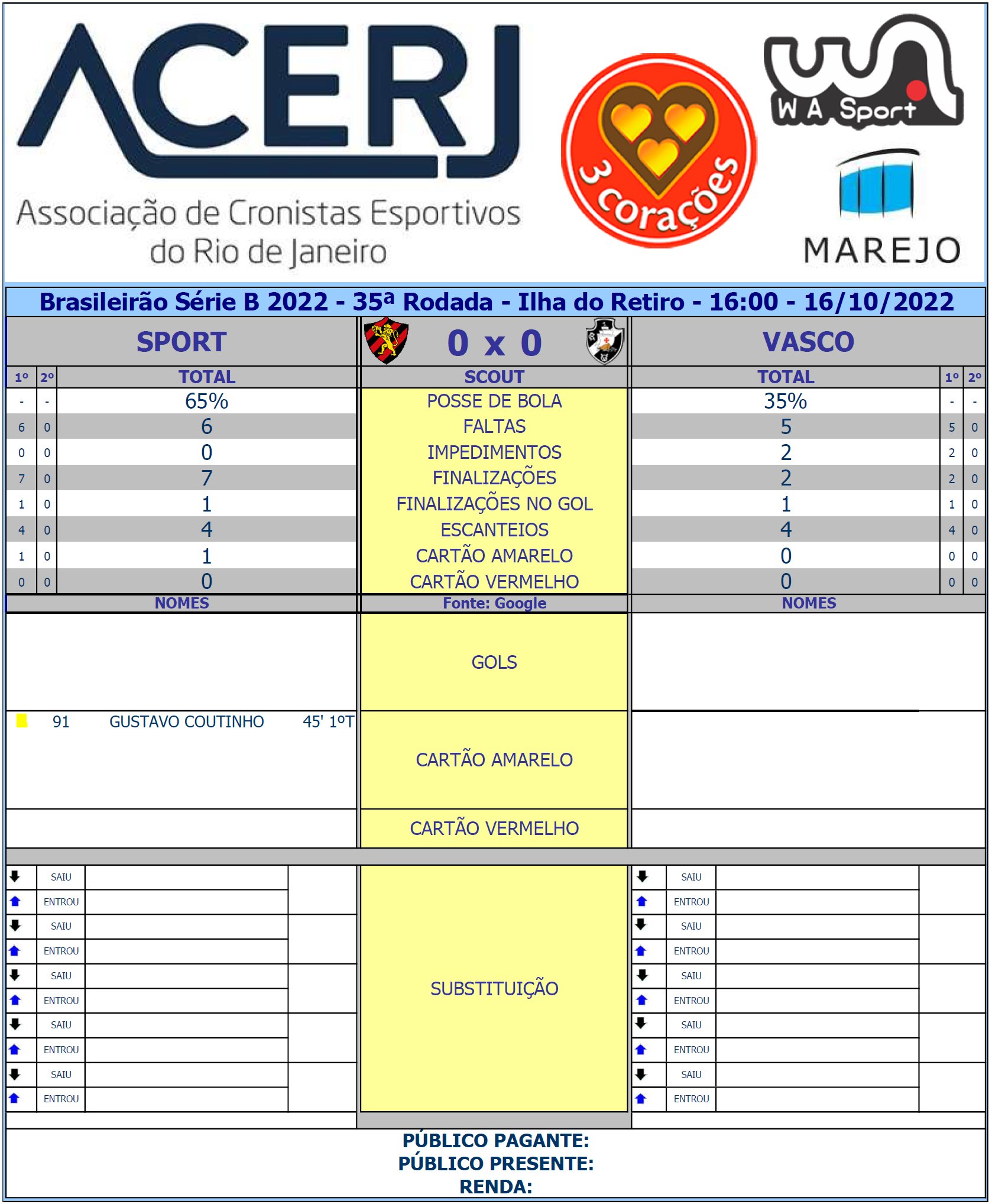 Scout do 1º Tempo de Sport e Vasco pela 35ª Rodada do Campeonato Brasileiro da série B 2022 na Ilha do Retiro #Acerjinforma #BrasileiraoSerieB #SPTxVAS #SportRecife #VascodaGama @BrasileiraoB @sportrecife @VascodaGama