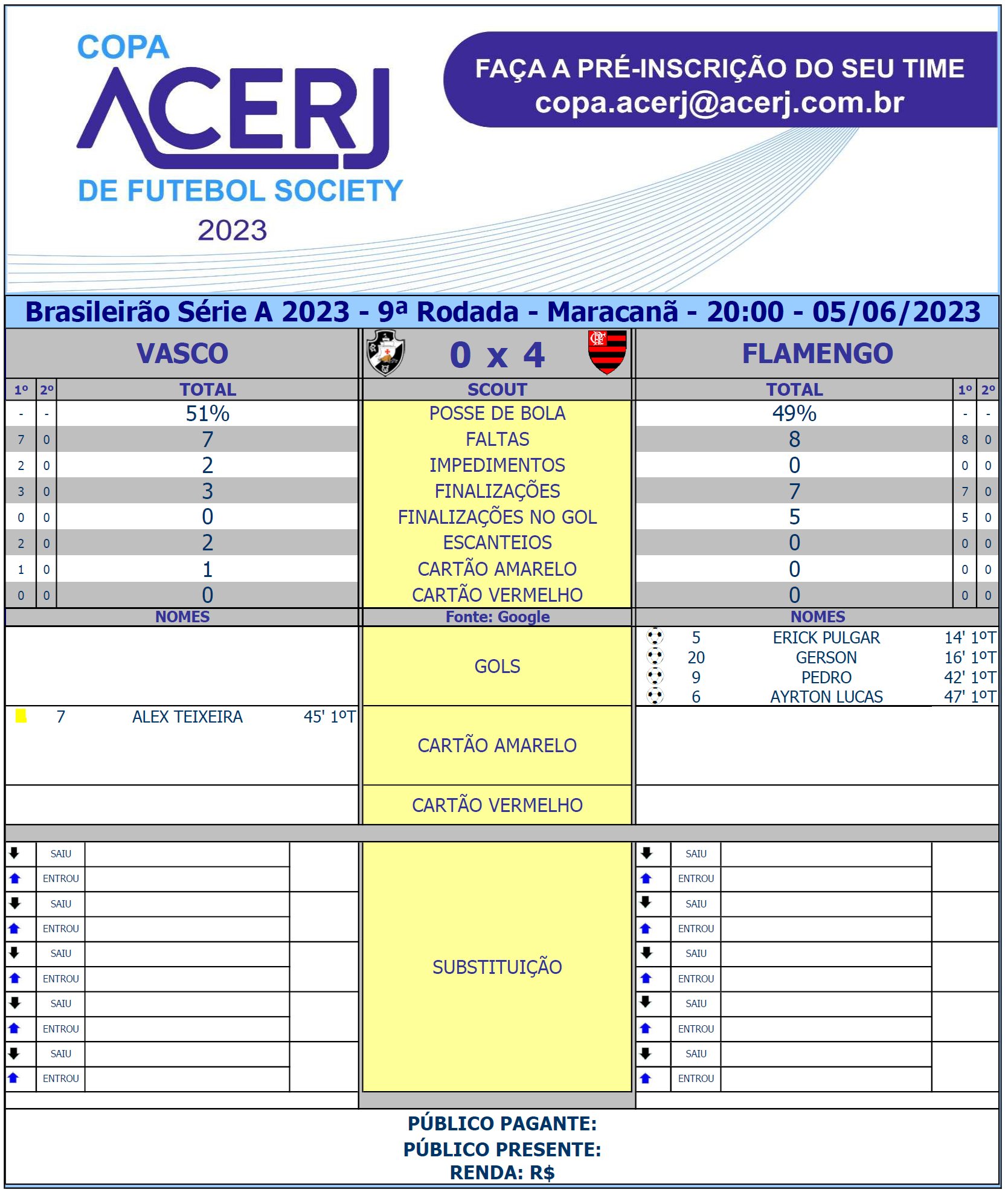 Scout do 1º Tempo de Vasco e Flamengo pela 9ª Rodada do Campeonato Brasileiro 2023 no Maracanã (Fonte: Google) #Acerjinforma #Brasileirao #VASxFLA #Vasco #Flamengo @Brasileirao @VascodaGama @Flamengo