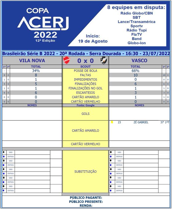 Scout do 1° tempo de Vila Nova x Vasco