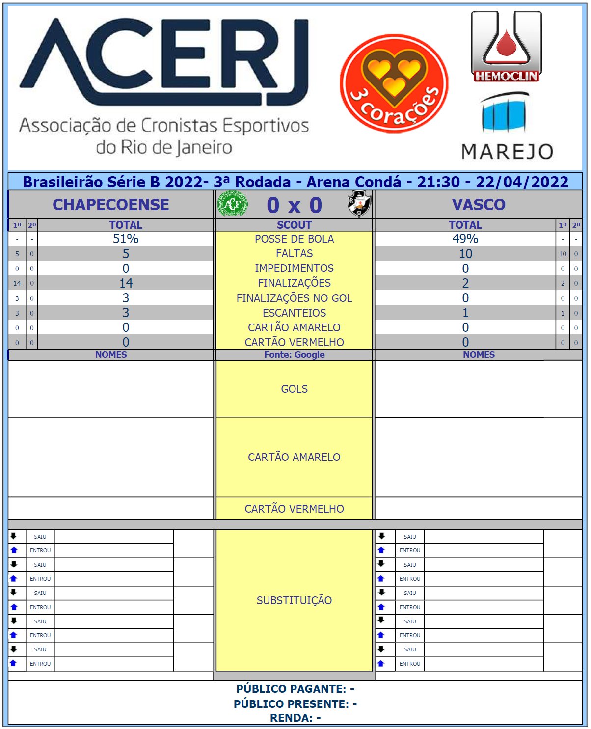 Scout do 1º Tempo de Chapecoense e Vasco pela 3ª Rodada do Campeonato Brasileiro da Serie B 2022 na Arena Condá #Acerjinforma #BrasileiraoSerieB #CHAxVAS #Chapecoense #Vasco @BrasileiraoB @ChapecoenseReal @VascodaGama