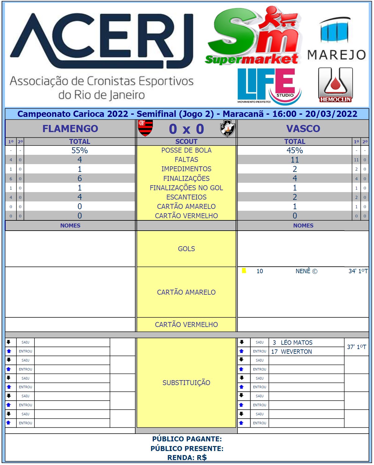 Scout do 1º Tempo de Flamengo e Vasco pelo 2º jogo da semifinal do Campeonato Carioca 2022 no Maracanã #Acerjinforma #Cariocao2022 #FLAxVAS #Flamengo #VascodaGama @Cariocao @Flamengo @VascodaGama