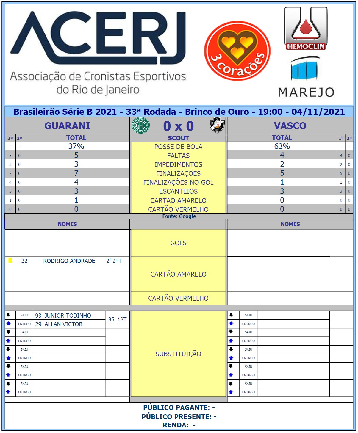Scout do 1º Tempo de Guarani e Vasco pela 33ª Rodada do Campeonato Brasileiro da Série B 2021 no Brinco de Ouro (Fonte: Google) #BrasileiraoSerieB #acerjinforma #GUAxVAS #Vasco #GuaraniFC @BrasileiraoB @oficialguarani @VascodaGama