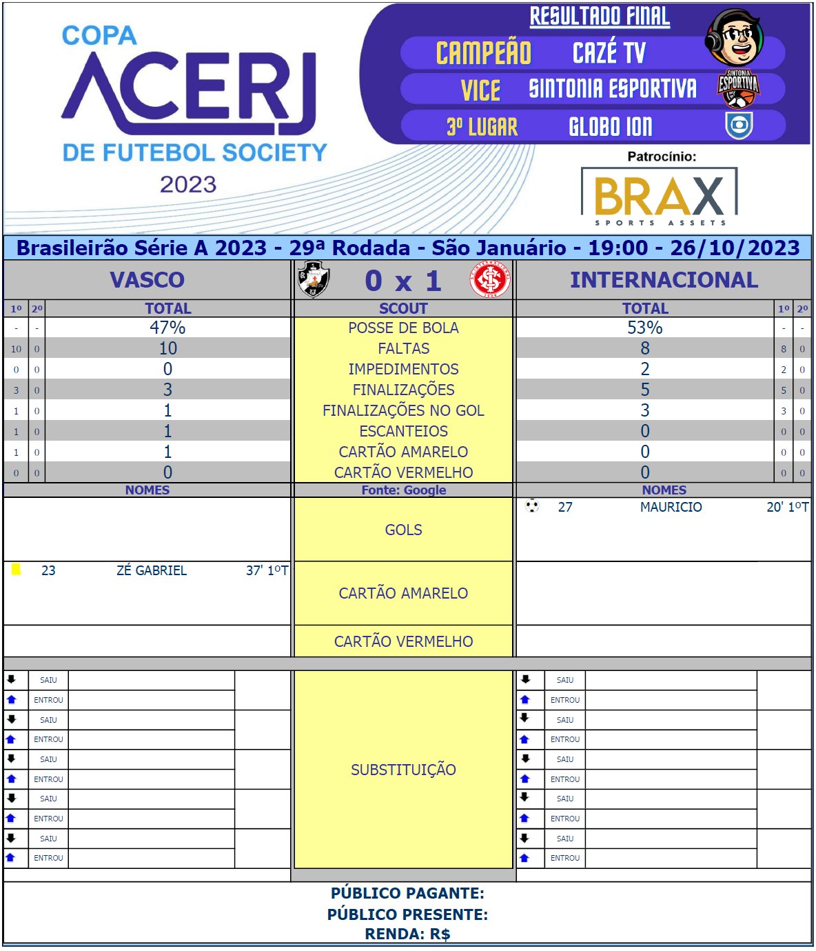 Scout do 1º Tempo de Vasco e Internacional pela 29ª Rodada do Campeonato Brasileiro 2023 em São Januário (Fonte: Google) #Acerjinforma #Brasileirao #VASxINT #Vasco #SCInternacional