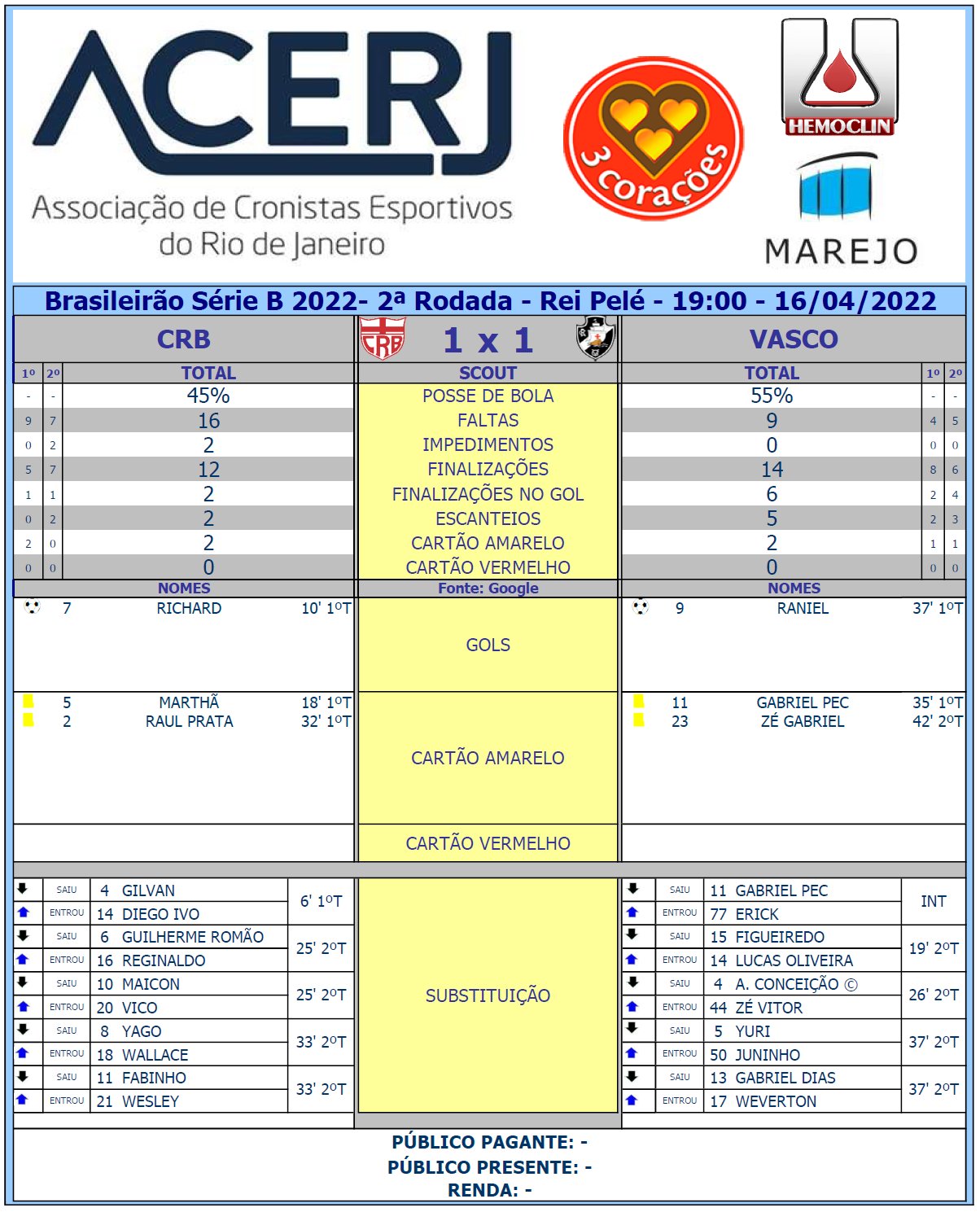 Scout Final de CRB e Vasco pela 2ª Rodada do Campeonato Brasileiro da Serie B 2022 no Rei Pelé (Fonte: Google) #Acerjinforma #BrasileiraoSerieB #CRBxVAS #CRB #Vasco @BrasileiraoB @CRBoficial @VascodaGama