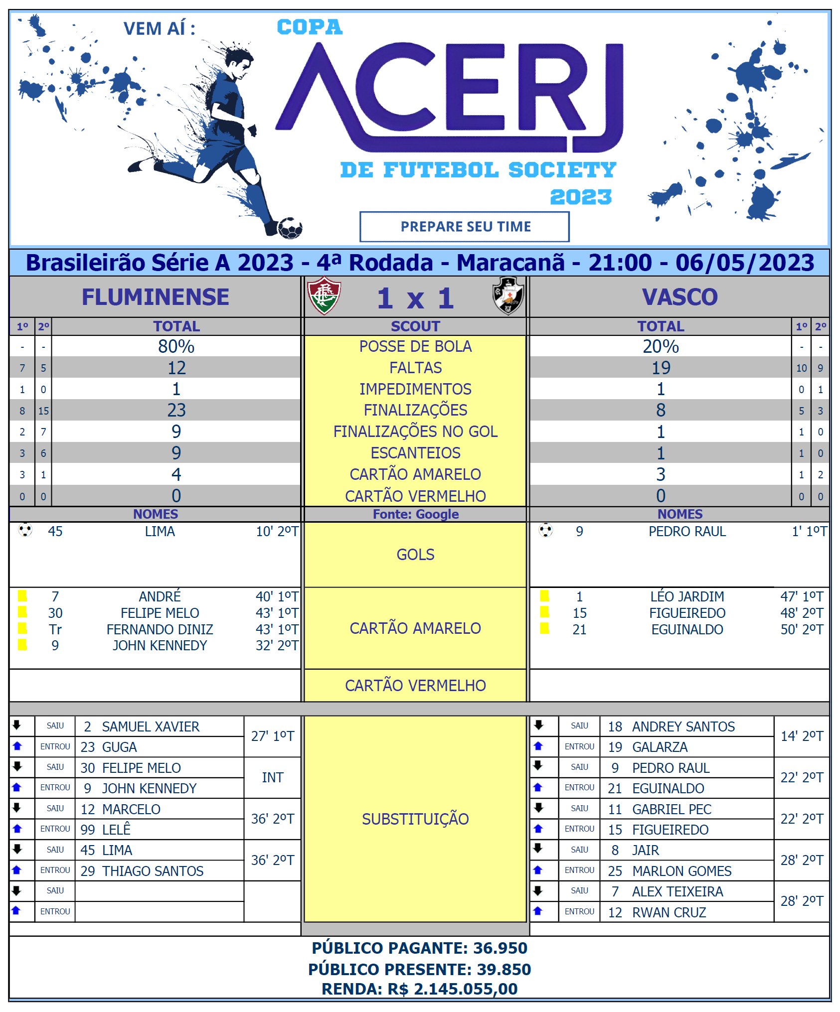 Scout Final de Fluminense e Vasco pela 4ª Rodada do Campeonato Brasileiro 2023 no Maracanã (Fonte: Google) #Acerjinforma #Brasileirao #FLUxVAS #Fluminense #Vasco @Brasileirao @FluminenseFC @VascodaGama
