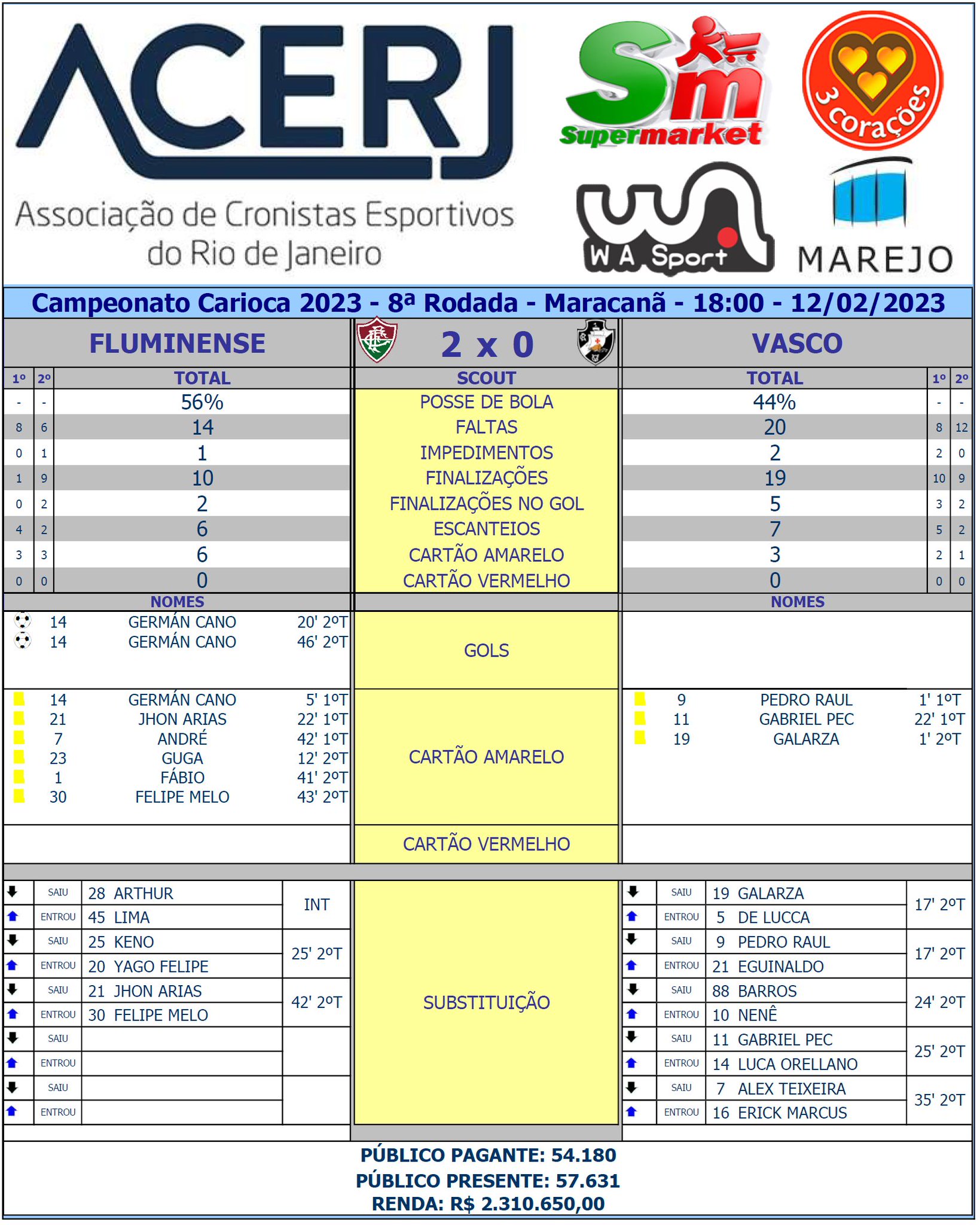 Scout Final de Fluminense e Vasco pela 8ª Rodada do Campeonato Carioca 2023 no Maracanã #Acerjinforma #CampeonatoCarioca #FLUxVAS #Fluminense #Vasco @Cariocao @FluminenseFC @VascodaGama